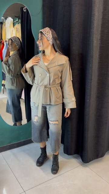 ترنچ کت + شلوار جین جک پات (واید لگ) + هدبند پوست سمور وارداتی