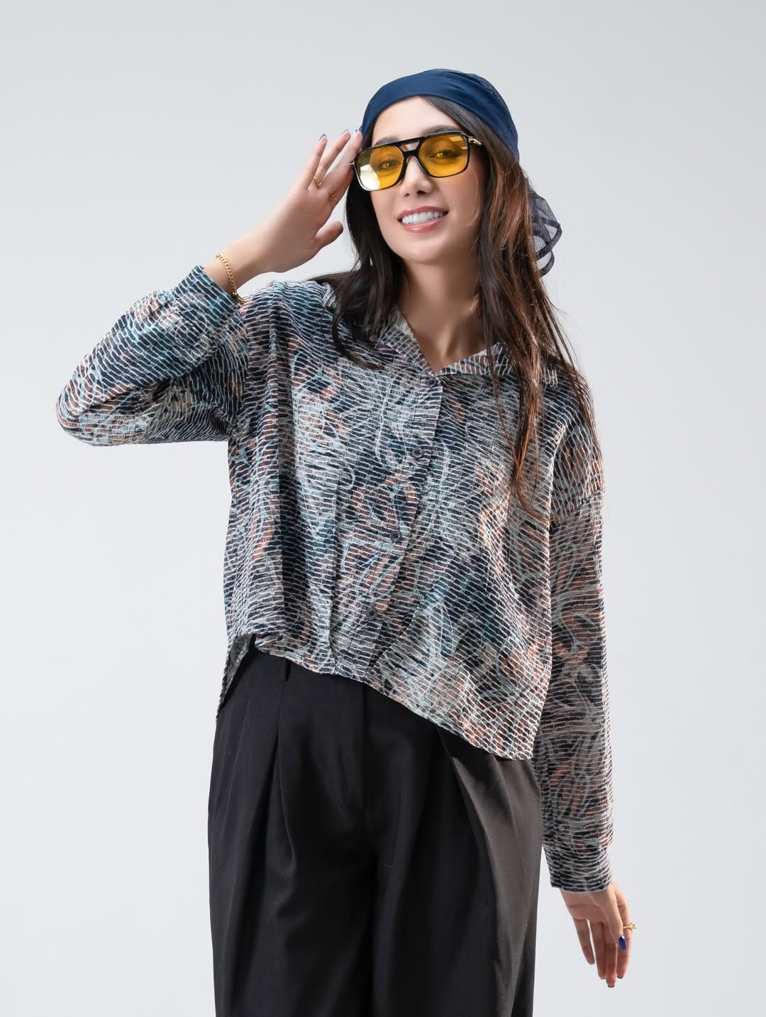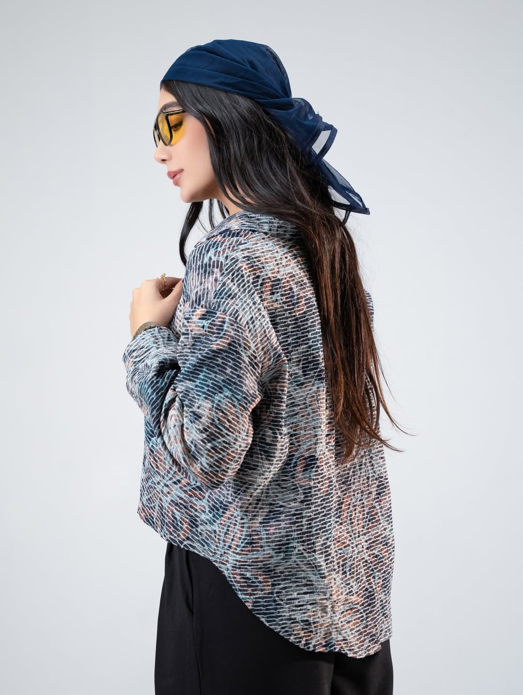 شومیز طرح دار وارداتی سه رنگ سرمه ایی موکا سبز