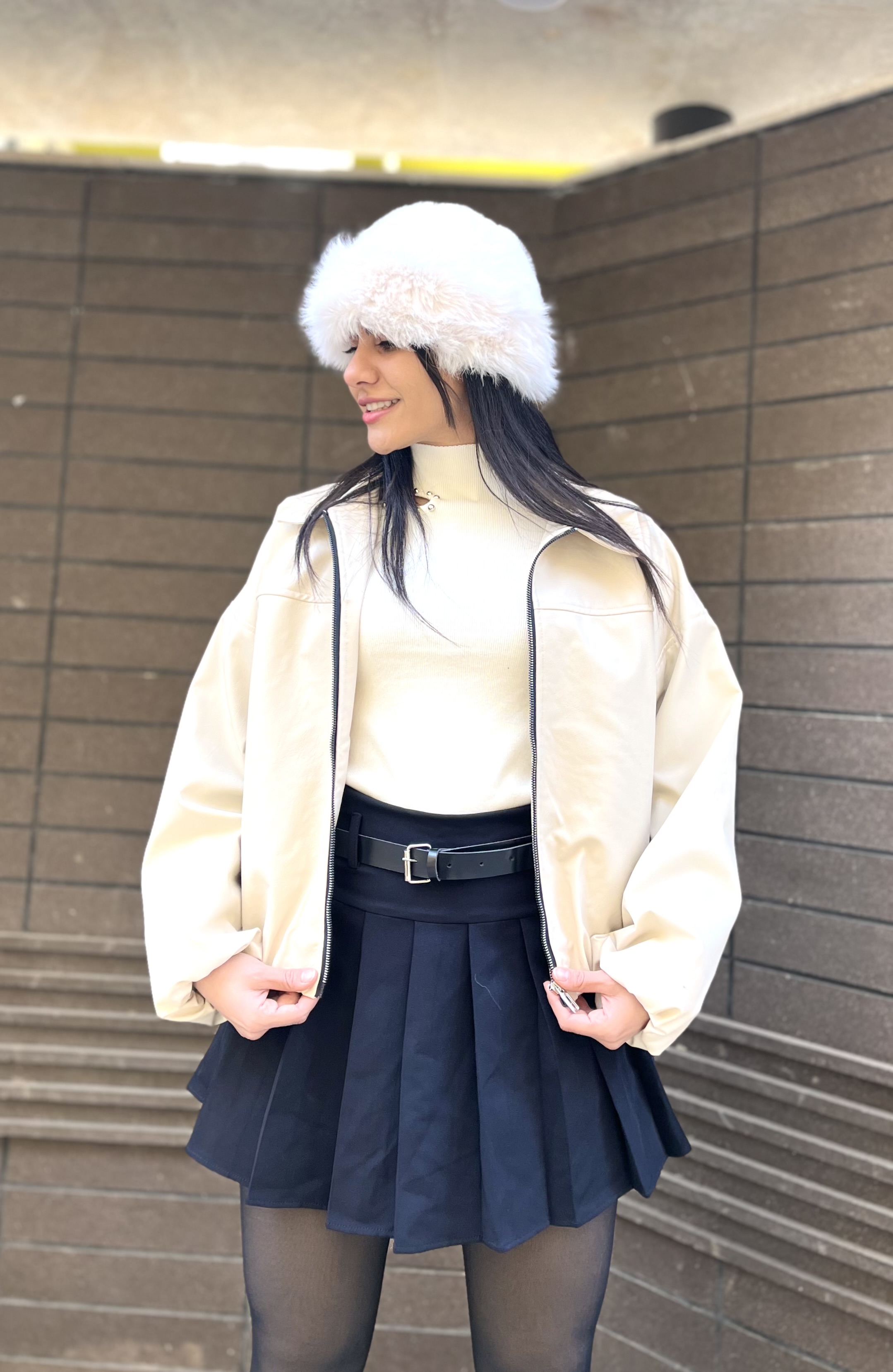 ناموجودترنچ کت + شلوار جین جک پات (واید لگ) + هدبند پوست سمور وارداتی
